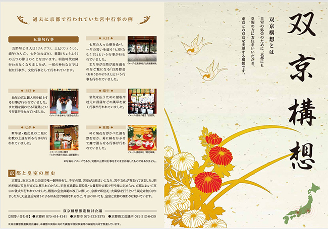 それで、既に前年から発足していた「京都の未来を考える懇話会」において協議され、同25年にまとめられた「京都ビジョン2040」の中に「双京構想」案が盛り込まれました。これは、端的にいえば、政治都市東京と文化都市京都が役割を分担していこうという長期構想であります。