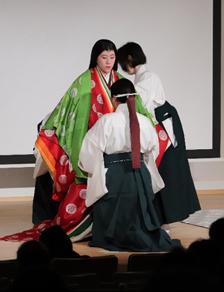 是非とも、その知識を社会に知ってもらうだけでなく、後世にも伝えたいと思い、勤務先の京都産業大学のむすびわざ館ギャラリーで企画展「女子宮廷装束の華」が開催された際には、公演「女子宮廷装束~十二単の着装実演」と題して、講演と着装実演をお願いするだけでなく、その講演内容を京都産業大学日本文化研究所の所報『あふひ』29号に掲載していただきました。これは国会図書館や各地の大学図書館が所蔵しておりますので、関心がある方はご覧いただければと思います。